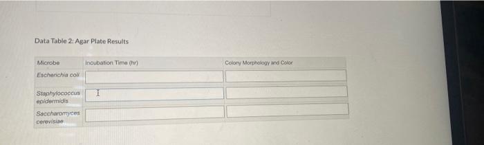 Solved Data Table 2 Agar Plate Results Incubation Time Hu Chegg Com